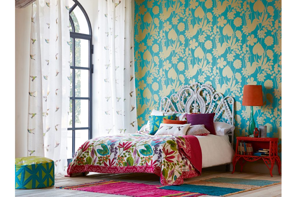 Vuoi creare un piccolo angolo di Paradiso? Ecco la carta Serendip di Manuel Canovas con uccellini magici che svolazzano tra fiori e piante da mille e una notte.