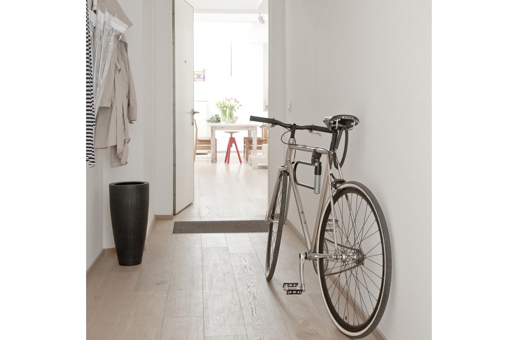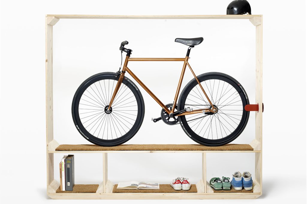 Tanto meglio se, oltre che tenerla sospesa da terra e aderente al muro, il supporto serve anche a riporre gli accessori e altri oggetti. Anzi, chi ha un modello di cui vantarsi la sfoggia nel living: la bici diventa un elemento da ambiente casual-chic!
