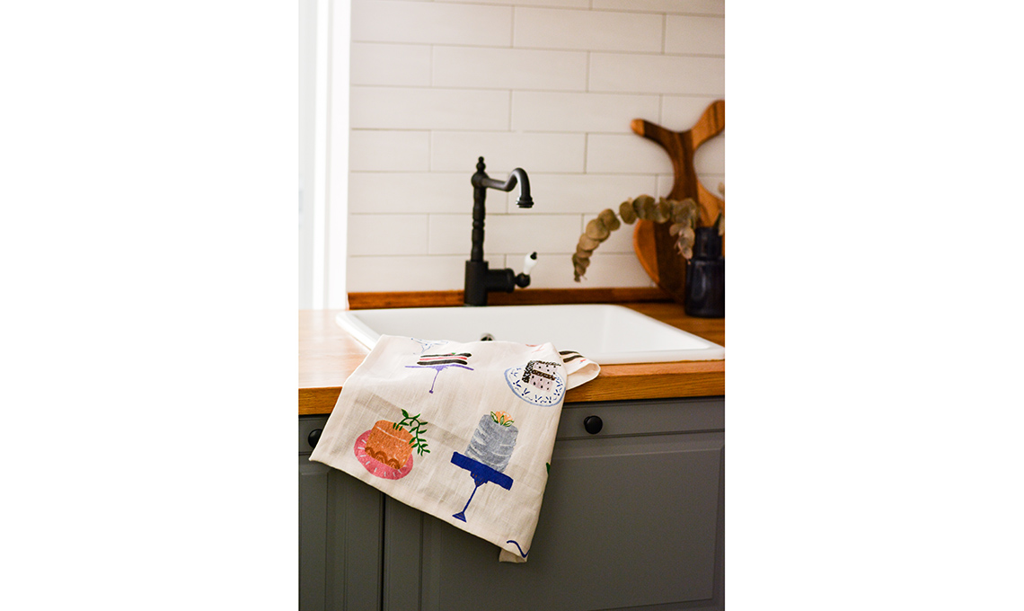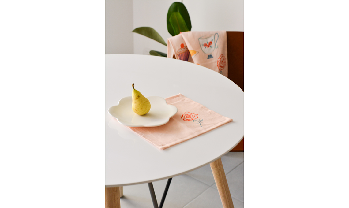Dalle sue grafiche nascono tessili per la casa, quaderni e tote bags ricchi di colore e allegria, un mondo dove i suoi acquerelli prendono vita.