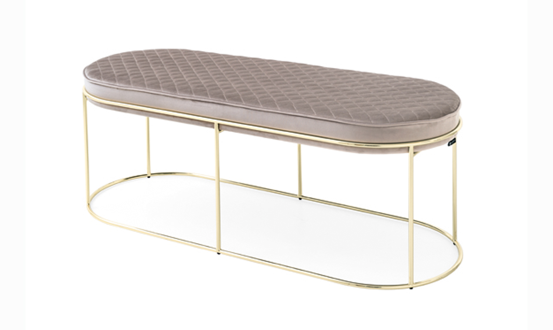 Atollo ha base in metallo finitura ottone e seduta imbottita e impunturata [Calligaris, cm 113x43x43h]