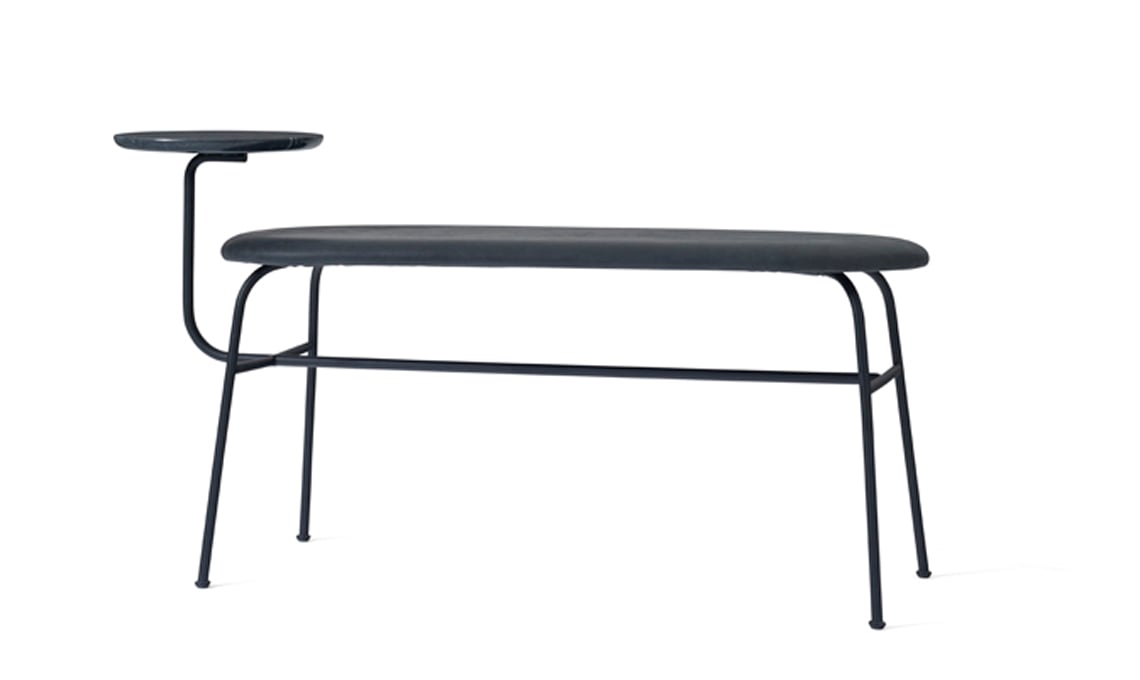 Base in acciaio, seduta in pelle e piano in marmo per Afteroom [Menu da TaniniHome, cm 116x37x60h]