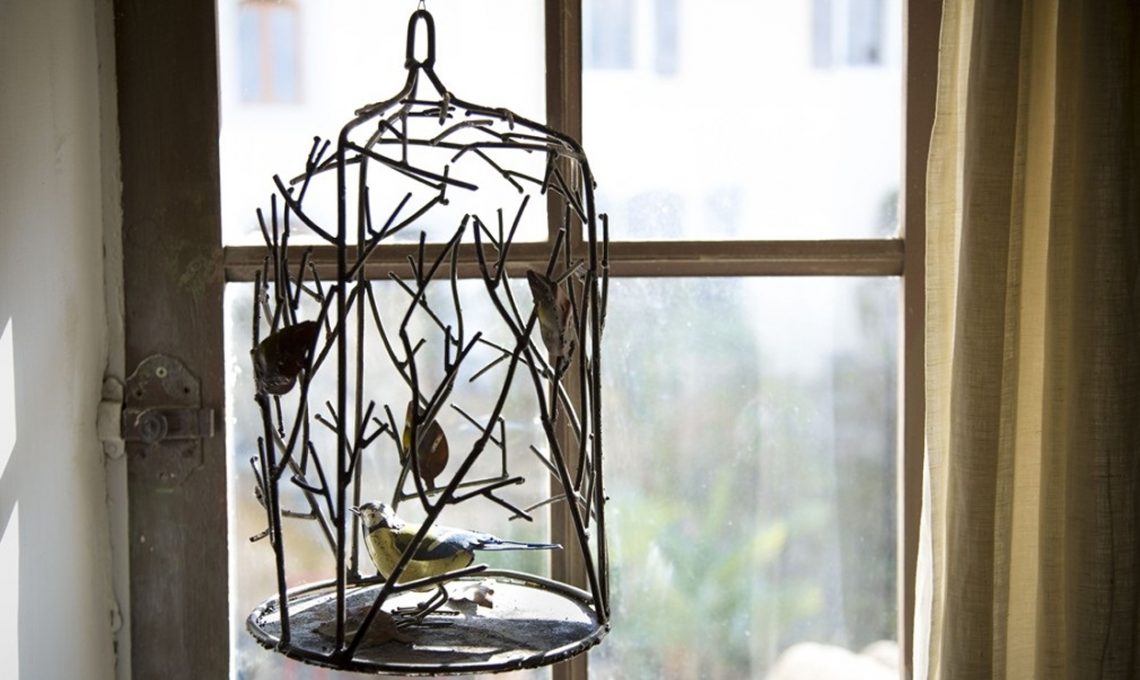 Lampade, librerie, mensole, portafrutta, oggetti decorativi accomunati dal richiamo alla gabbietta per uccelli