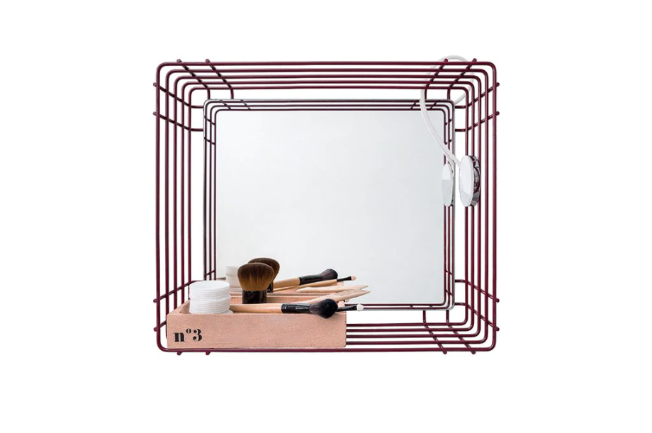 Acqua e Sapone è una mensola per il bagno in tondino di ferro con specchio luminoso [ Birex].
