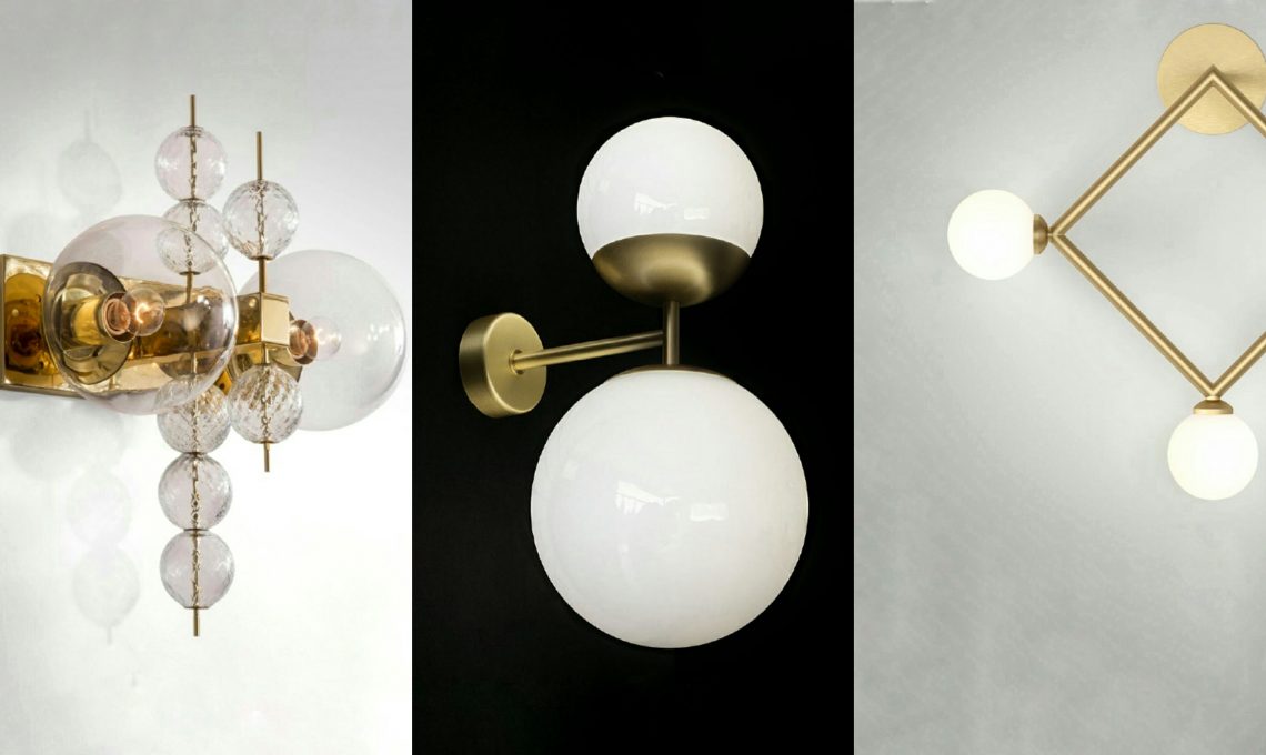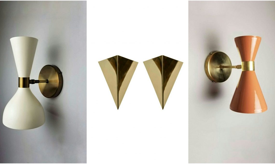 Lampada da Hotel anni ’70 con struttura in ottone €1.350, lampada da parete Biba di Lorenza Bozzoli €681. lampada da parete Rhombus di Atelier Areti €580 [tutto su PAMONO].