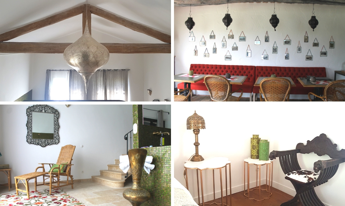 In Provenza ho trovato vari richiami alle conquiste arabe del passato, dettagli che non stonano ma anzi, fanno risaltare la classicità generale. Una brocca per l’acqua utilizzata come porta asciugamani, lampade importanti per giocare con l’altezza dei soffitti, punti luce sui tavolini della zona colazione per creare atmosfera.