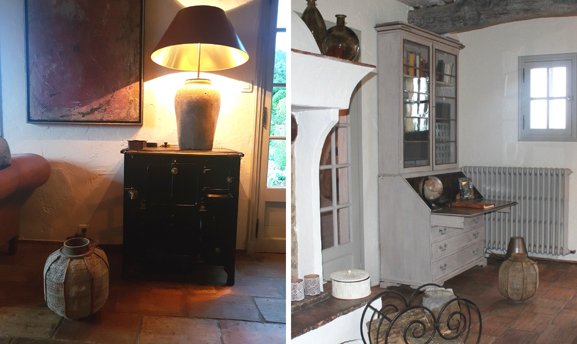 Anche unire dettagli moderni con pezzi antichi è uno stile che aiuta a creare un contesto molto personale in cui sentirsi a casa più che in un albergo. Una vecchia cucina economica, per esempio può essere reinventata come mobile da ingresso e impreziosita da lampade importanti che giocano sul tono dei colori della terra. Oppure un’antica credenza per i piatti riutilizzata come arredo per nascondere la televisione, elemento forse necessario, ma che potrebbe stonare in un salotto così morbido e accogliente.