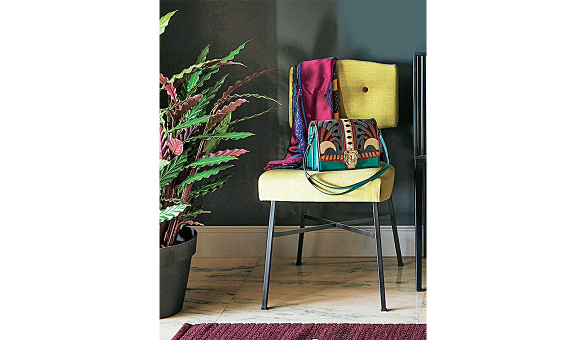 Prima cosa farsi guidare dal contesto, in questo caso un pavimento di marmo rosa e le cromie dei quadri alle pareti (con molto giallo e arancio). L'idea giusta è aggiungere delle tonalità calde come l’aragosta (un arancio non troppo acceso) e il giallo (più senape che limone).