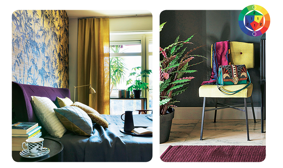 Fai una prova, Copri il cuscino arancio sul divano (nella foto del soggiorno), vedrai che l’ambiente ‘si raffredda’. La ragione? Quell’arancio è complementare del prugna e l’abbinamento di due complementari, vistosi o sobri che siano, è sempre piacevole. Ricorda che uno dei due colori (qui il viola) deve dominare, l’altro va aggiunto a piccoli tocchi.
