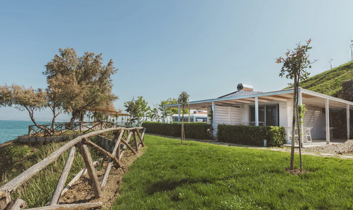 Al Bagni Vittoria, a Vasto Marina (Ch), si prova un raro e piacevole senso di distacco dalla pazza folla: tra la scogliera e lo stile eco-nomade-chic dei proprietari Luigi Giuliani ed Elisabetta Zaccaria, gran viaggiatori, che raccontano: «L’idea della roulotte nasce dal nostro desiderio di non aggiungere cemento alla costa; e ce n’è un’altra per i servizi, sempre curata da BaG_substudio».