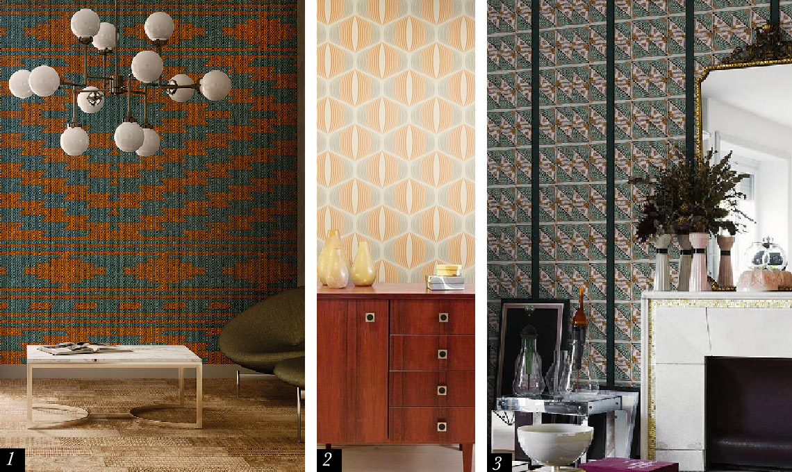 • Stile rétro: optical o con disegni che ricordano le carte da parati Anni ’60 e ’70 sono perfette per dare un tocco vintage agli ambienti. Magari abbinate ad un mobile di famiglia o per contrastare l’arredo contemporaneo. Perfette in ingresso, camera, soggiorno e nei negozi.