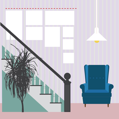 Fai delle prove per non sbagliare: prima di bucherellare le tue pareti, ritaglia tutte le sagome dei tuoi quadri su cartoncino e attaccale al muro usando un nastro adesivo riposizionabile.