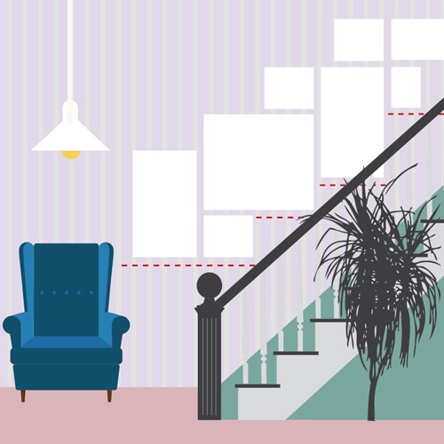 Scopri come 'riempire' la parete sopra il divano, quella sulle scale, come creare una composizione equilibrata sopra un mobile o come incorniciare la testiera del letto. Sfoglia la gallery!