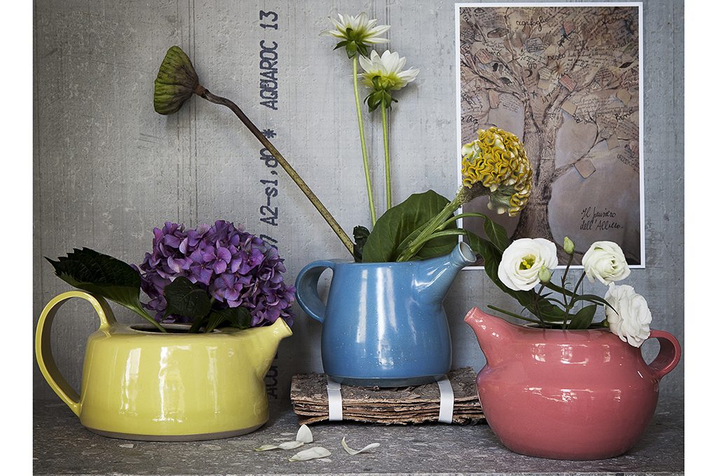 Un vasetto qui, uno là, scegliendo dove metterli solo in base alla luce; un tempo si usava così. Oggi gli artisti dello styling insegnano ad allestire con le piante vere scenografie verdi, combinando altezze e foglie di fogge diverse (quelle imponenti del banano con quelle ‘a bastoncino’ dell’euphorbia tirucalli...); anche i fiori in tavola sono più belli se ‘si rincorrono’ in una fila di vasi, l’ortensia da sola, le rose cerate a mazzetto, le corolle a palla dell’allium con quelle sfrangiate dei garofani. È un gioco di forme, prima ancora che di colori. E i tessuti, i cuscini, i piatti decorativi sulla parete fanno da controcanto, fioriti anche loro.