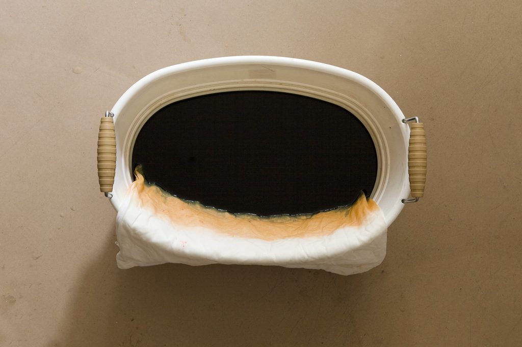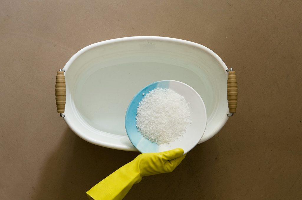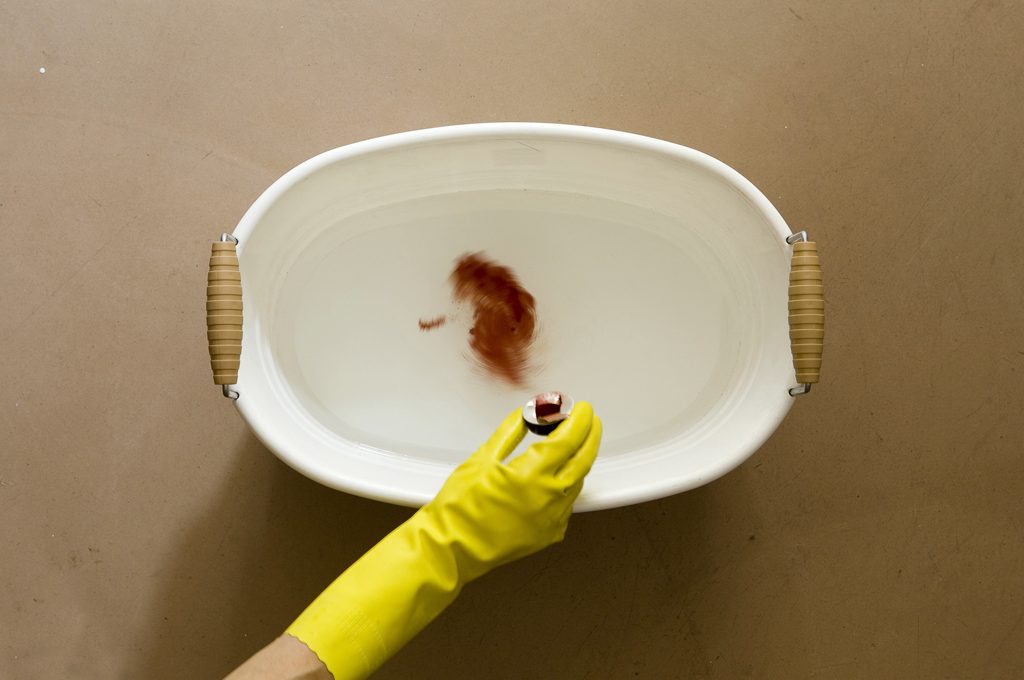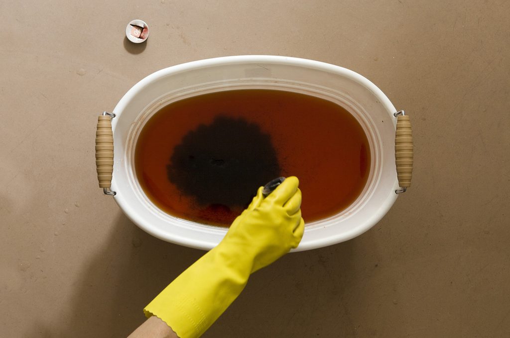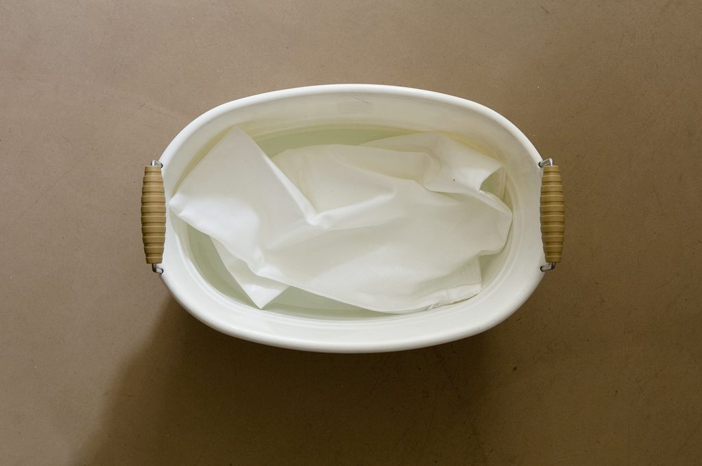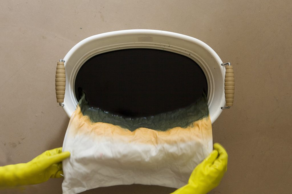 Immergi il tessuto nel catino e muovilo lentamente a intervalli regolari per distribuire bene il colore.