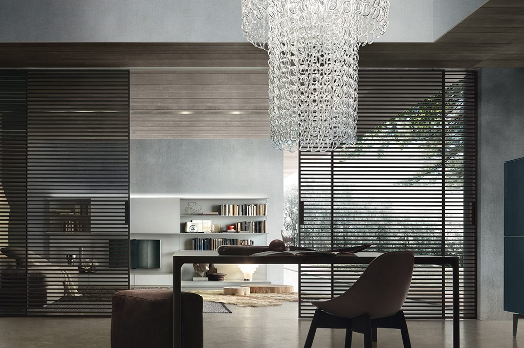 Leggere da manovrare grazie a un binario speciale, le ante vetrate Stripe dividono gli ambienti lasciando filtrare la luce grazie ai traversi in alluminio su entrambe le facce. Disponibili in 50 colori [Rimadesio prezzi e misure su progetto].