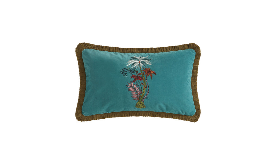 - cuscino in velluto ricamato con frange, Jungle Palm [Emma J Shipley]