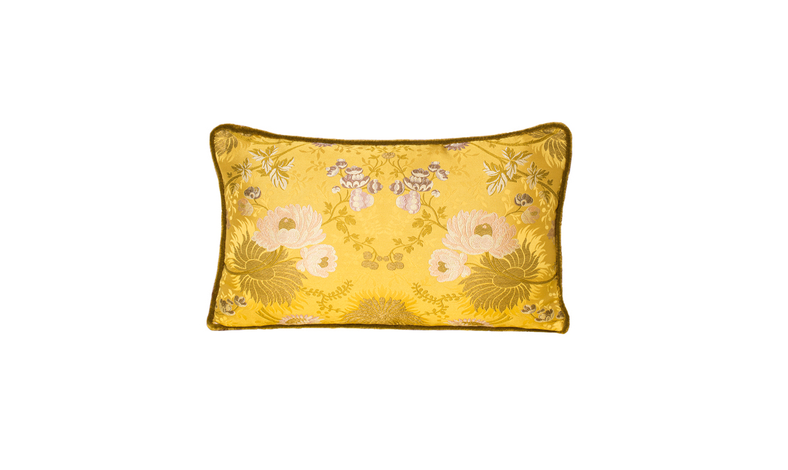 - Cuscino in lampasso di seta, raso e fili metallici dorati per La Reine [Maison Anne Carminati]