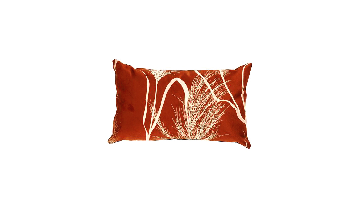 - Cuscino Pampas, con foglie a contrasto su fondo color terra bruciata [Casashop]