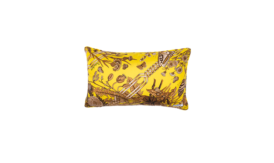 - Cuscino in twill di seta con stampa Bouquet, colori a contrasto su fronte e retro [Mantero 1902]