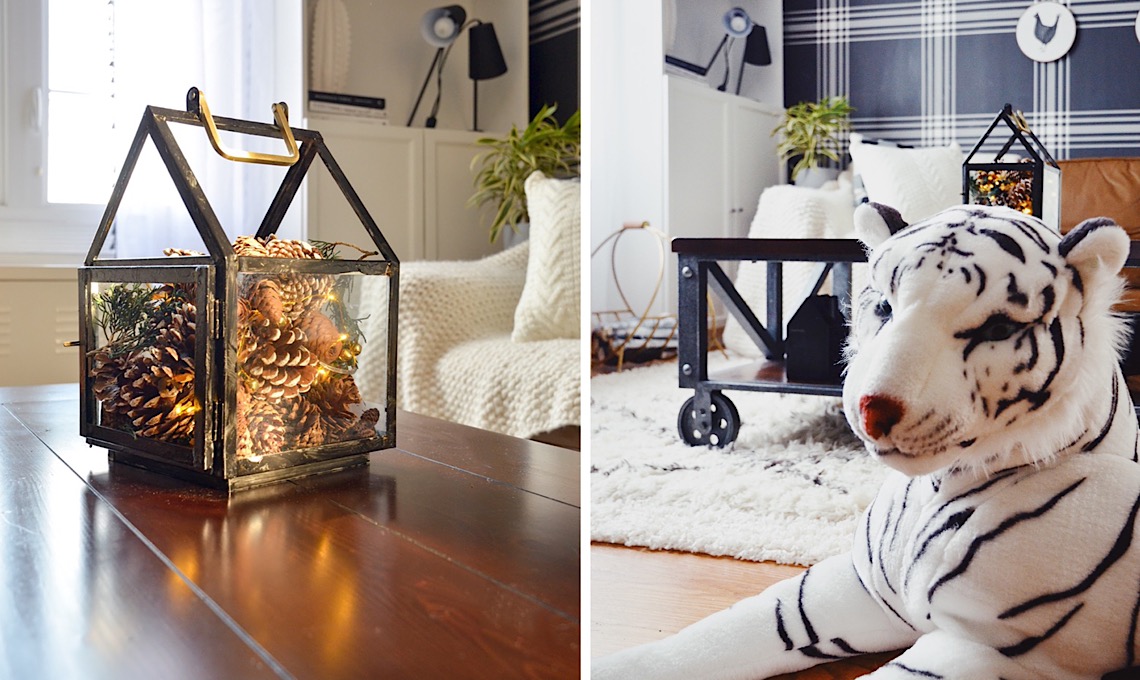 In ultimo se sentite la mancanza di gnomi, elfi e renne potete provare ad usare dei grandi peluches come elemento d’arredo. Sbirciate nella camera di figli o nipoti alla ricerca di un orso polare, un pinguino o qualsiasi altro animale che vi ispiri compagnia. Io ho optato per una tigre, però rigorosamente Bianca!