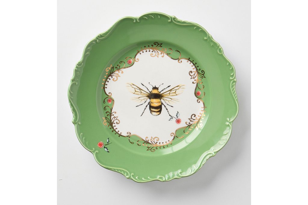 Atmosfere tropicali nel servizio in porcellana Jardin Indien [Bernardaud €250 il piatto torta].