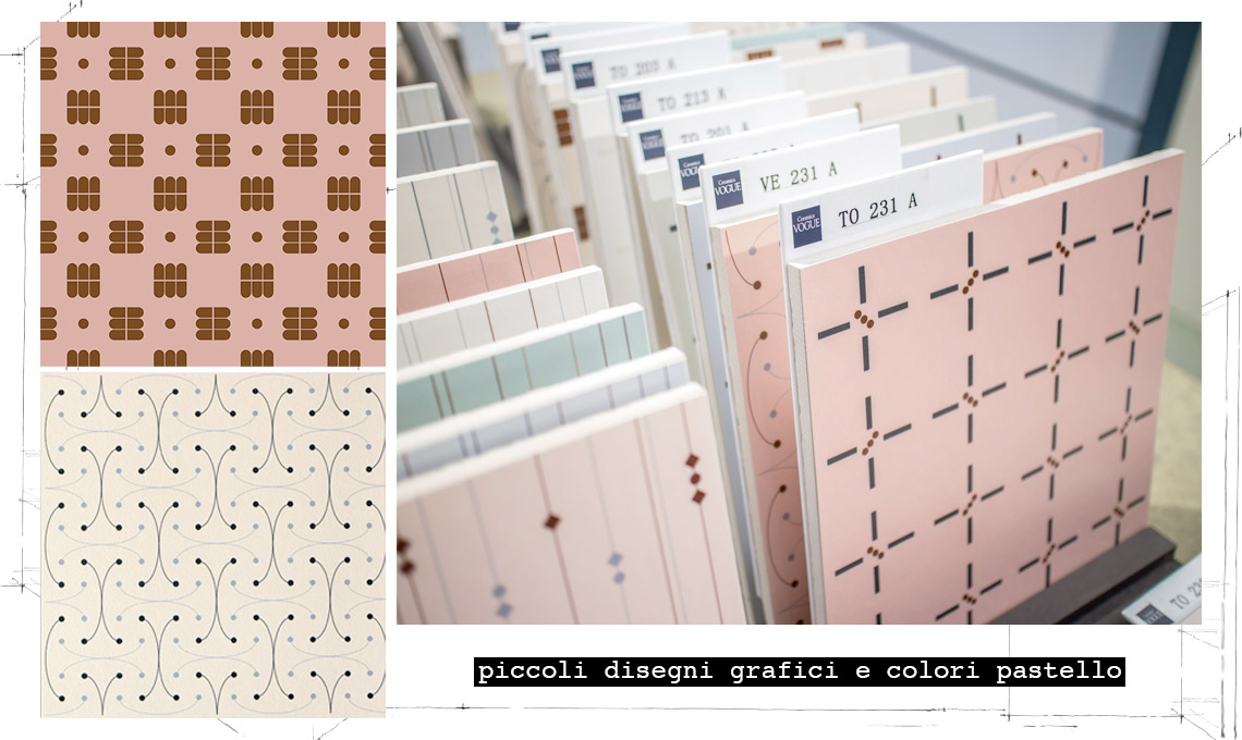 Le ceramiche con piccoli disegni grafici e colori pastello sono perfette per chi ama i pattern grafici di ispirazione romantica e intima. Caratterizzano l’ambiente nel quale vengono posate con leggerezza e semplicità. Usale per decorare intere pareti o pavimenti. In questo caso puoi abbinarle ad altre piastrelle tinta unita chiara oppure all’intramontabile bianco.