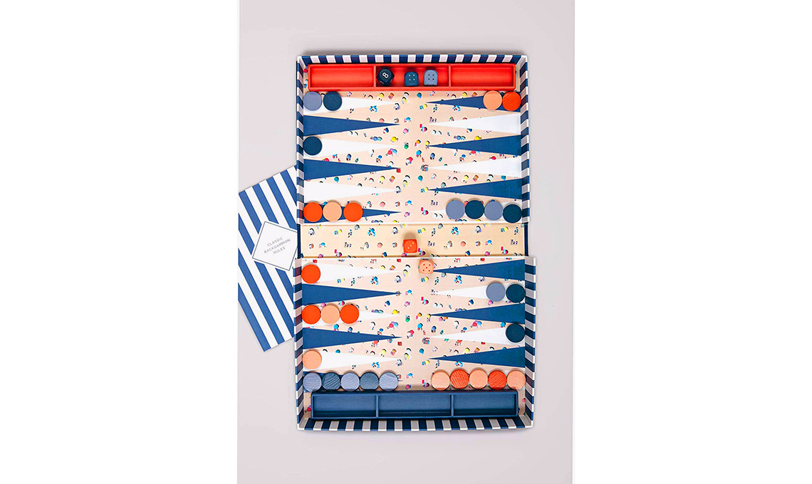 Vacanziero, con la foto di una spiaggia ripresa dall’alto di Gray Malin, il backgammon più estivo [Galison € 37].
