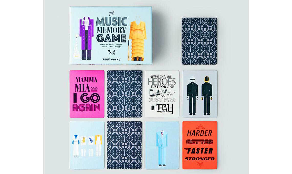 Per mettere alla prova i fan delle icone della musica il memory con i loro look [Printworks € 19].
