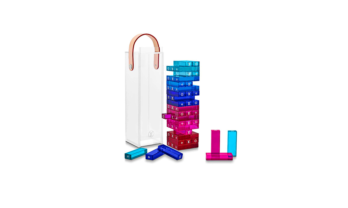 Da collezione il kit di costruzioni griffate in plexiglass Torre Monogram [Louis Vuitton, prezzo su richiesta].
