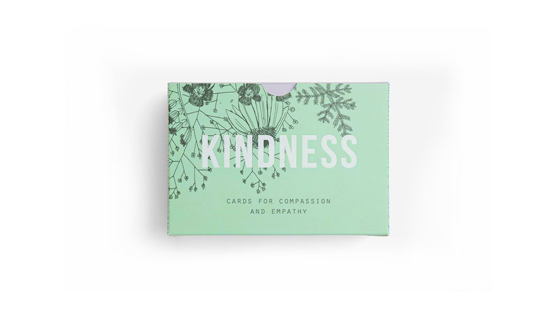 Con frasi e disegni che invitano a far uscire il meglio di sé le carte Kindness [The School of Life € 14,50].