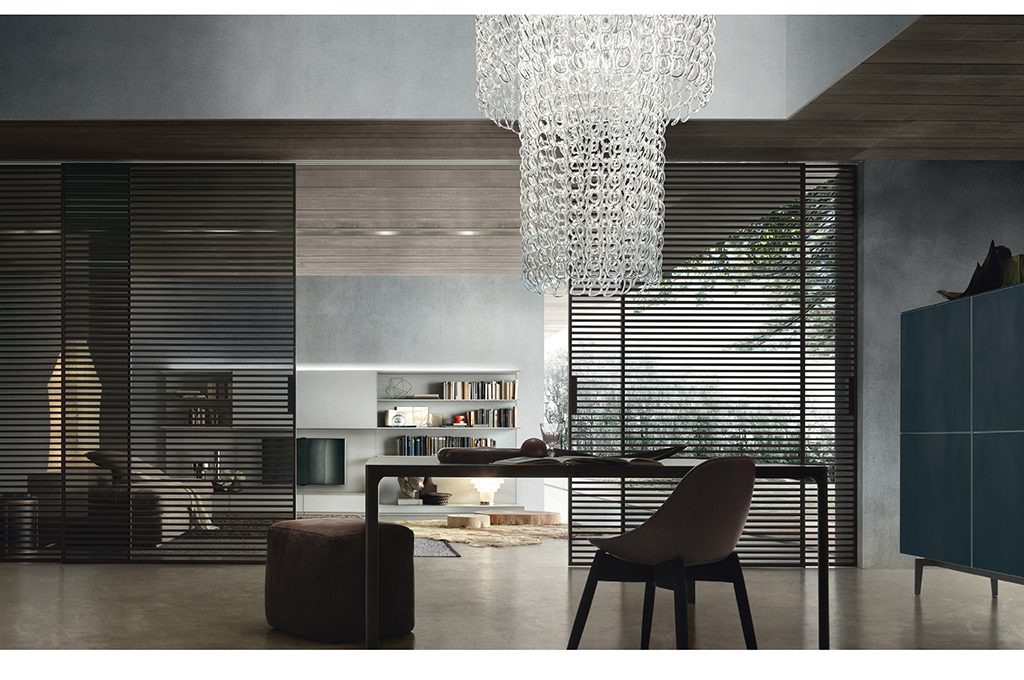 Basta separare lo spazio con pareti scorrevoli a vetro: maxi-ante vetrate (nelle foto alcuni modelli) che delineano l’ambiente ricavando angoli dedicati, senza incidere sulla luce, le visuali e i percorsi.