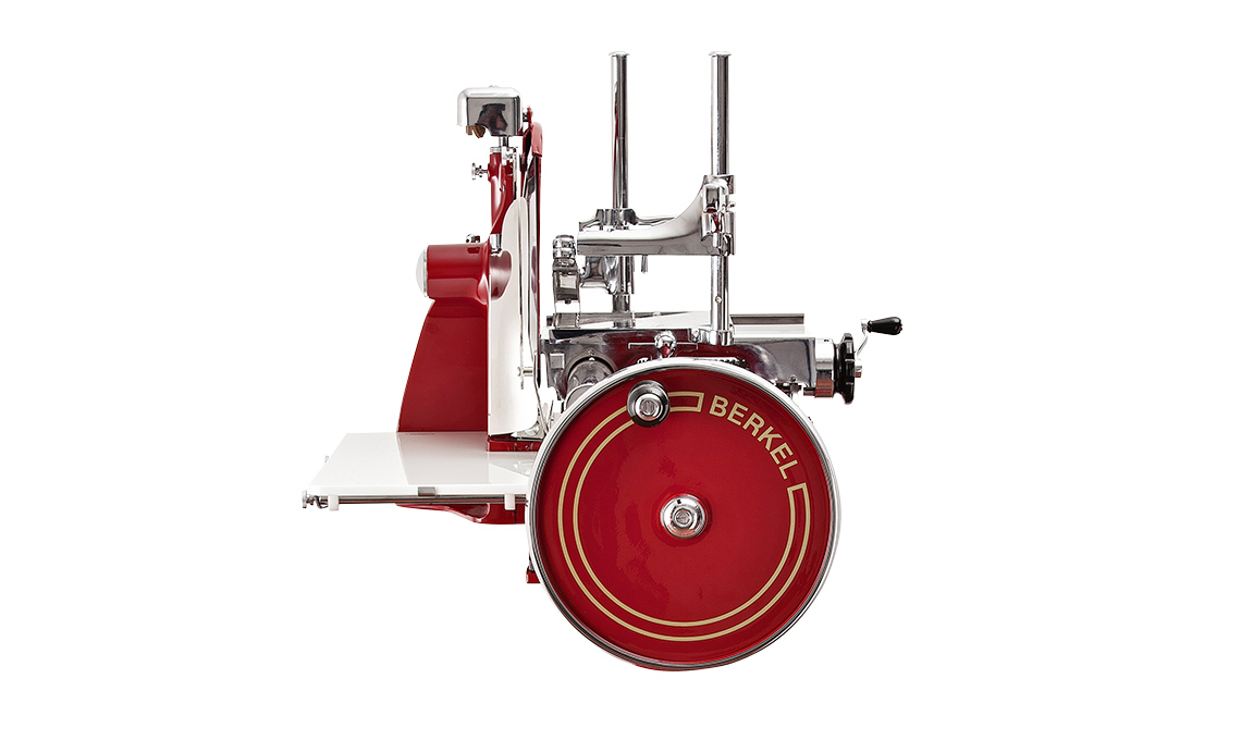 Rincorrendo dal 1898 il ‘taglio perfetto’, come definito dal suo fondatore, l’olandese Wilhelmus van Berkel. Dalla fine dell’800 a oggi, una lunga storia fatta di tante licenze internazionali e modelli, ma anche di cambi di proprietà che hanno portato la Van Berkel International – del Gruppo Rovagnati dal 2014 – ad acquisire la coltelleria Dal Ben e la concorrente OMAS, per diventare uno dei più importanti gruppi mondiali nel campo delle affettatrici e del food processing. Il passato e il presente, che, a partire dal Modello A, offre tante forme e brevetti, ma mantiene lo stesso meccanismo. E nella Volano Rossa, la super icona