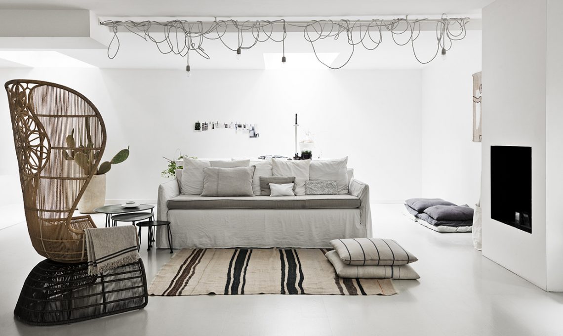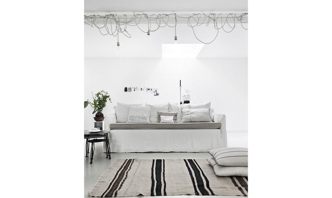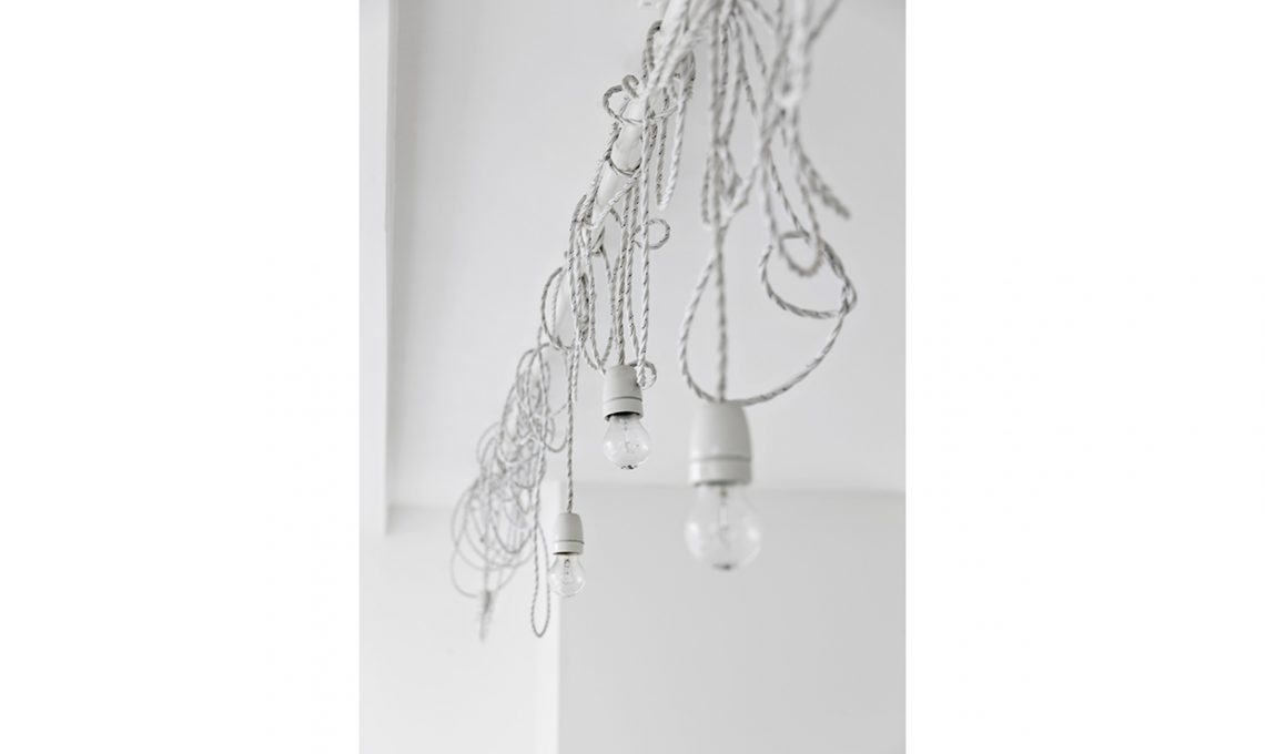 Attorno a una sbarra in metallo, sono stati attorcigliati dei fili elettrici a cui sono appese delle comunissime lampadine nude. Voilà, l'effetto 'aggrovigliato-ad-arte' è originalissimo, addirittura spettacolare. Perfetto in ambienti minimal o per risolvere l'illuminazione di una stanza con una trave.