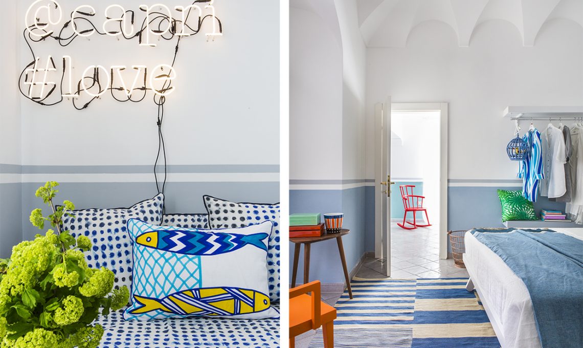 I relooking a base di pittura sono i più semplici e alla portata di tutti. Questa proposta di fai-da-te permette di creare una boiserie finta semplicemente verniciando delle fasce di muro. È un'idea particolarticolarmente indicata per dare carattere a stanze bianche in cui non si voglia togliere la luce intervenendo con il colore pieno. Qui la finta boiserie dipinta è servita a dare personalizzare una casa vacanze a Capri: il trucco è ripeterla in tutte le stanze per dare continuità di stile e visiva.