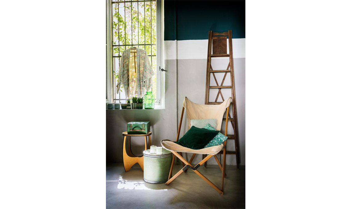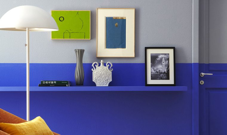[3] Giochi di colore. Nelle stanze troppo alte, le fasce orizzontali di colore riducono la verticalità. Tavolino [Maidee, in esclusiva per Emporio Mikica].