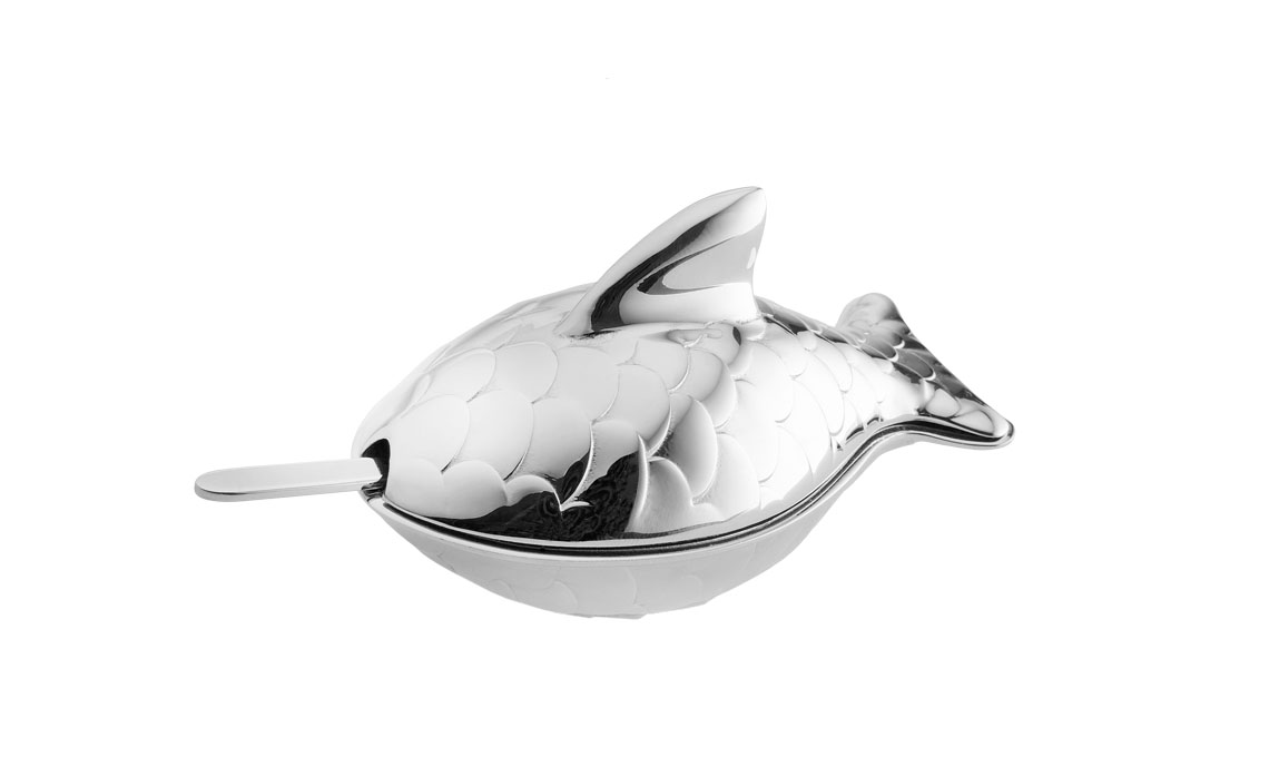 Colombina Fish è la saliera con cucchiaino in acciaio [Alessi]