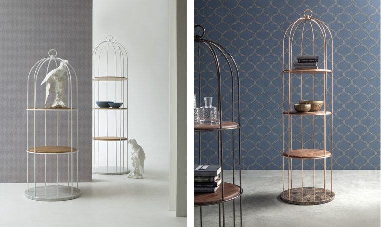 Base in fili di ferro dorati e piano-vassoio per il tavolino [Zara Home, ø cm 70x38h €179].