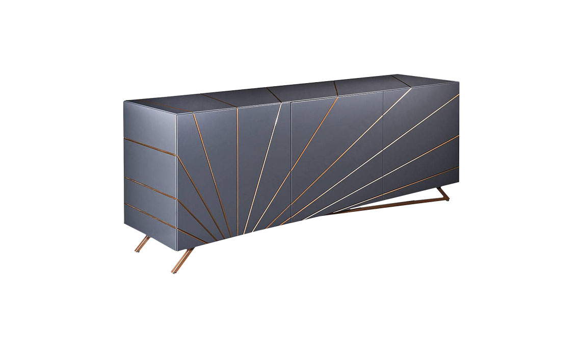 Finiture in ottone, legno con lavorazione canneté e marmo nella console Brera dalle linee arrotondate [Former In Italia, cm 150x40x99h]