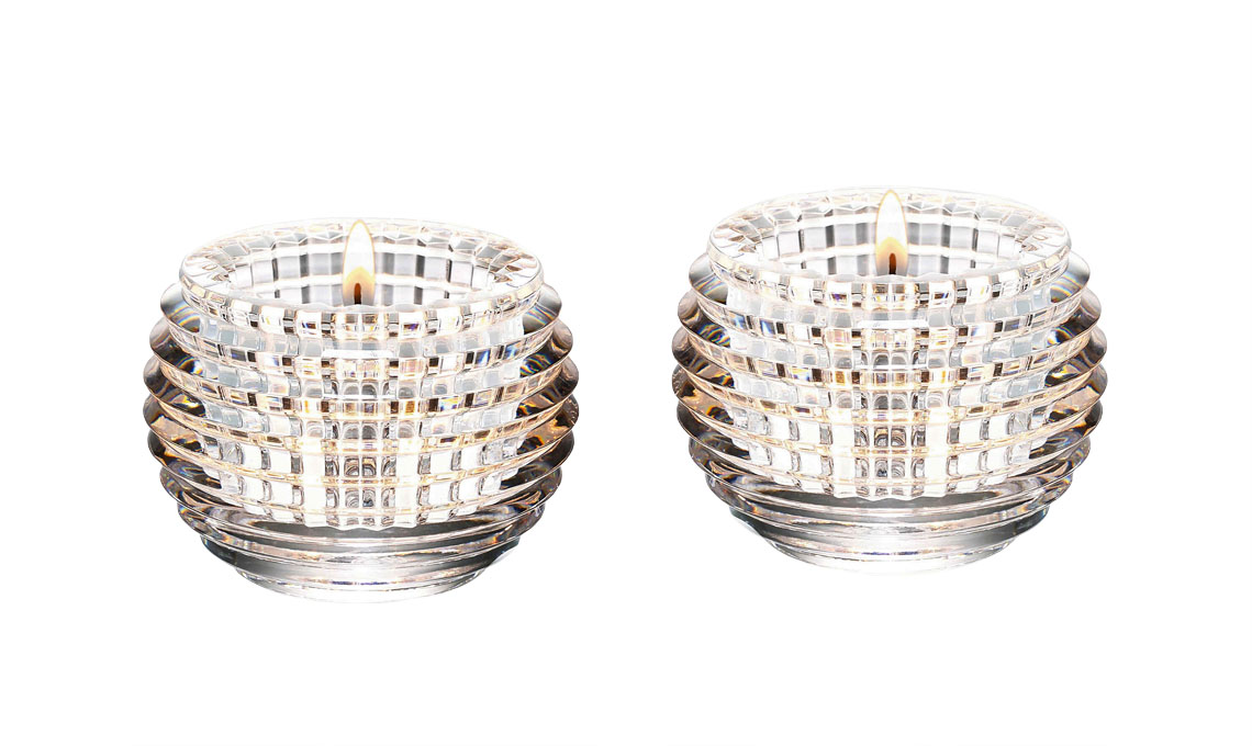 Oro e ametista il portacandele in cristallo scolpito a mano Ophelia [Reflections Copenhagen, cm 7x9x8h]