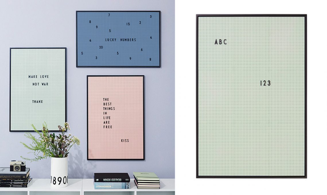 Una dei grandi ritorni del 2017: le letter board, cioè le bacheche che ricordano quelle che negli anni Settanta-Ottanta venivano usate nei bar e nei negozi di alimentari per scrivere il listino prezzi. Tornano naturalmente rinnovate e stilosissime, come queste di Design Letters in toni pastello e lettere nere.