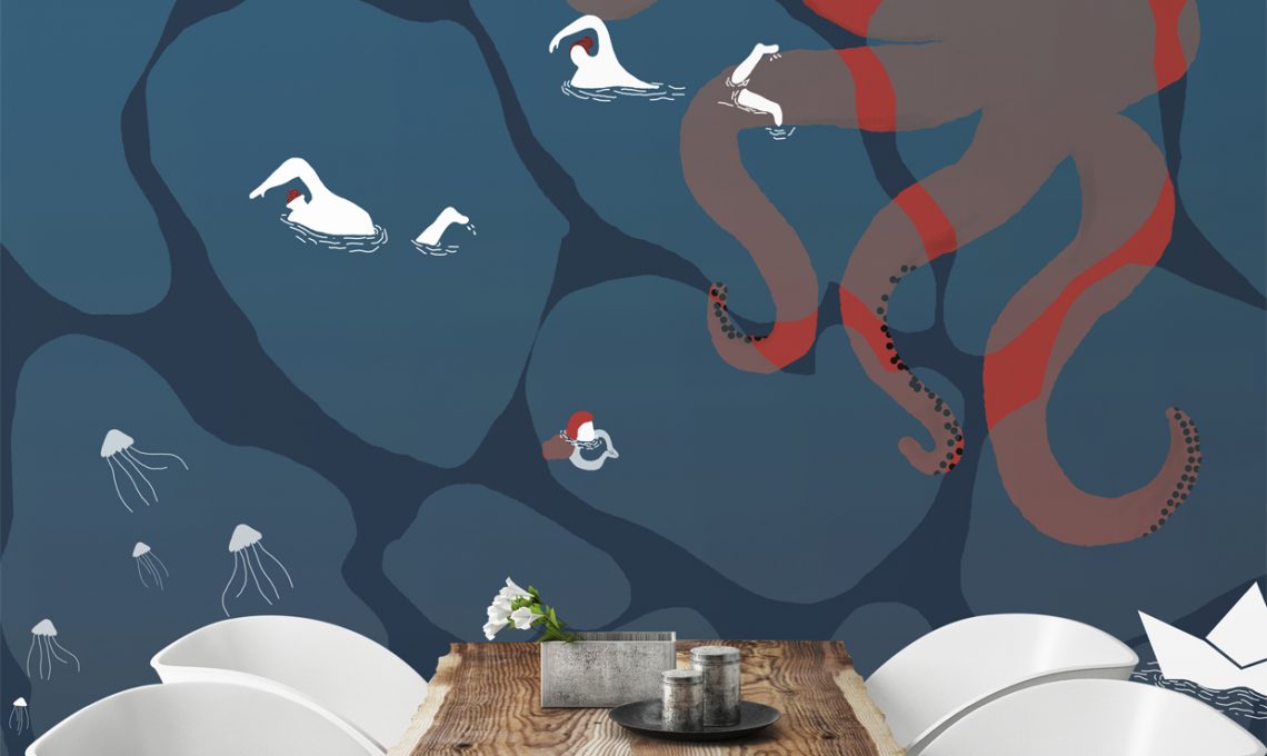 Carte da parati Trend Line Wave e Acquarium [Wallpepper, larghezza rollo cm 57, €89/mq].