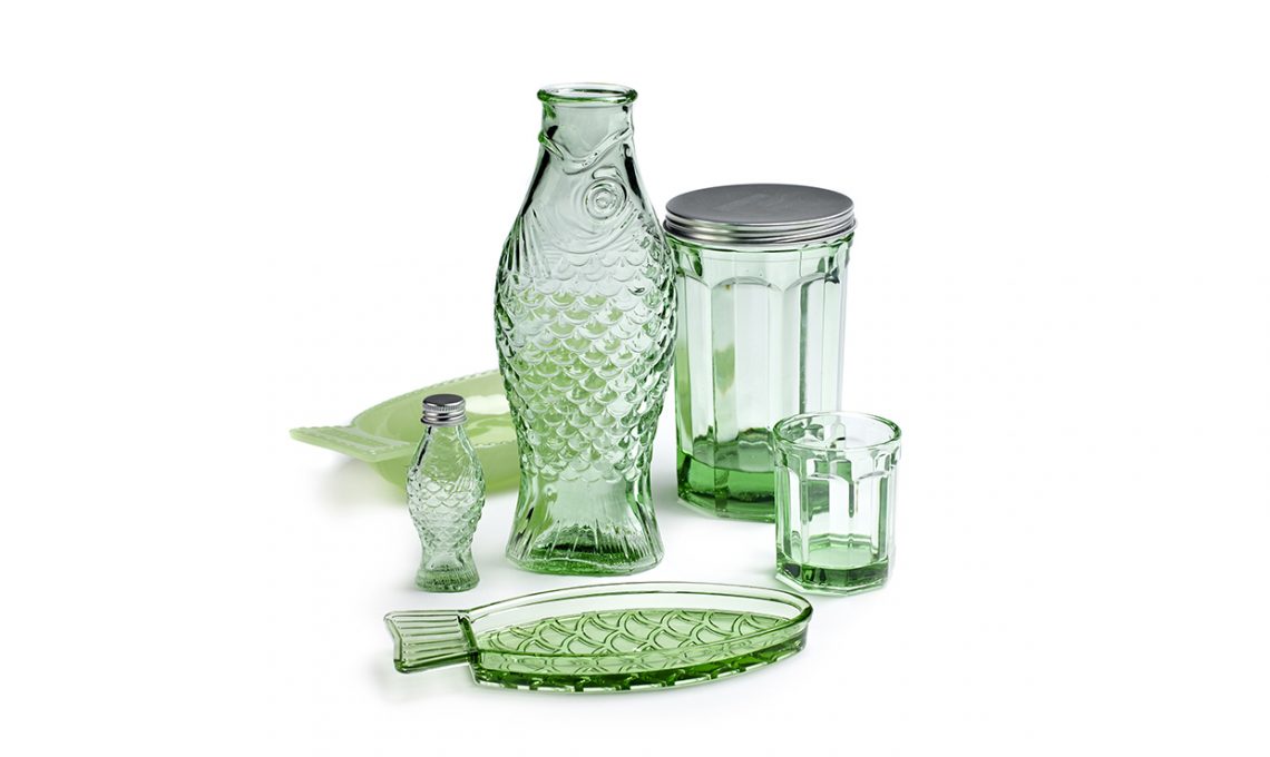 Accessori per la tavola Soleil [H&H Pengo, piatti da €6, mug €6, tazzine da caffè €6,70, bicchieri Positano €6,10, bottiglia in vetro €17,60].