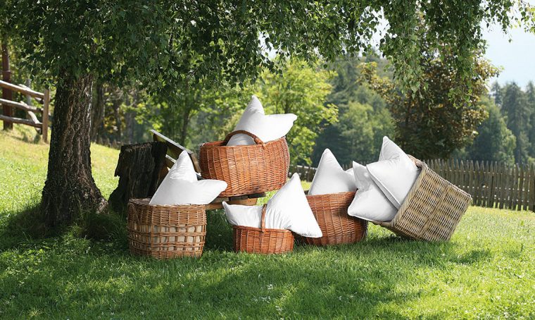Rattan e midollino intrecciati e verniciati per la poltrona con cuscino Serafino [Viadurini, cm 106x71x148h €905].