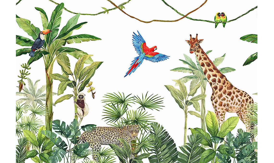 S’ispira all’iconico abito Jungle Dress la carta da parati Versace Jungle [Versace €91,95 il rollo da 10 mt].