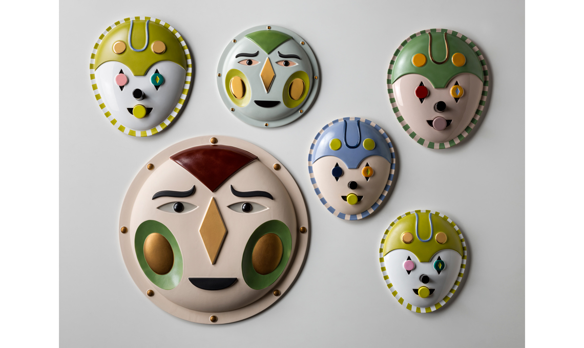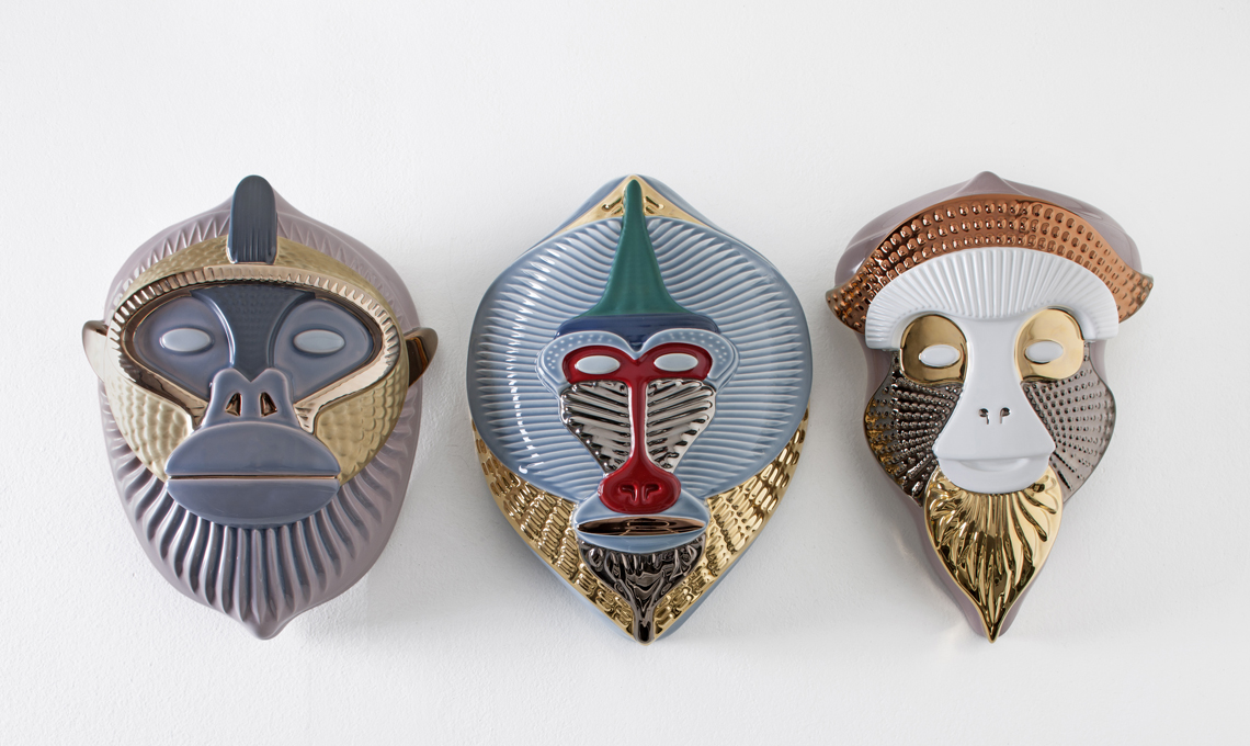 Maschere in ceramica, prodotte da Bosa su disegno di Elena Salmistraro. Nella stessa serie anche una collezione di vasi [Primates di Bosa, a partire da €450]