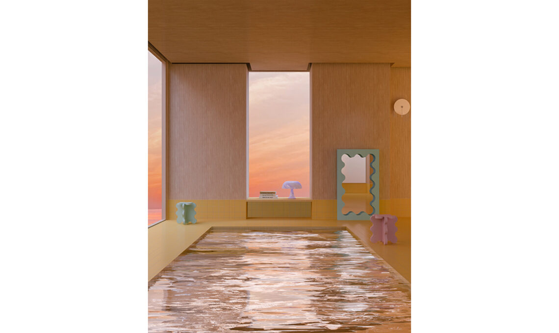 Questi mondi immaginari hanno già una propria estetica con una palette colore precisa: paesaggi alieni, onirici, in cui atterrano arredi di design dalle forme organiche o in cui troviamo interni pastello, spesso piastrellati. Se un tempo i colori ‘tech’ erano il bianco e il grigio, oggi sono le sfumature delicate di rosa, verde acqua e viola, tanto che il Very Peri, il colore Pantone 2022, si ispira proprio a questa realtà altra.
