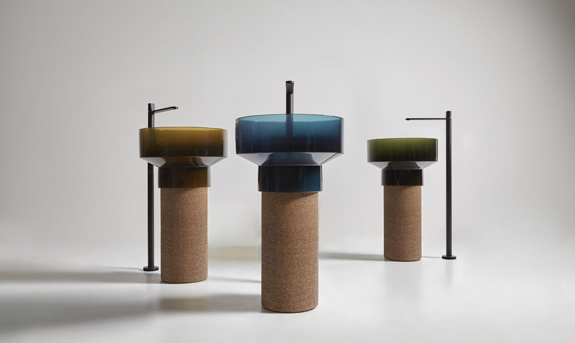 - Lavabo freestanding Borghi con base in sughero e bacino in Cristalmood [Antoniolupi]