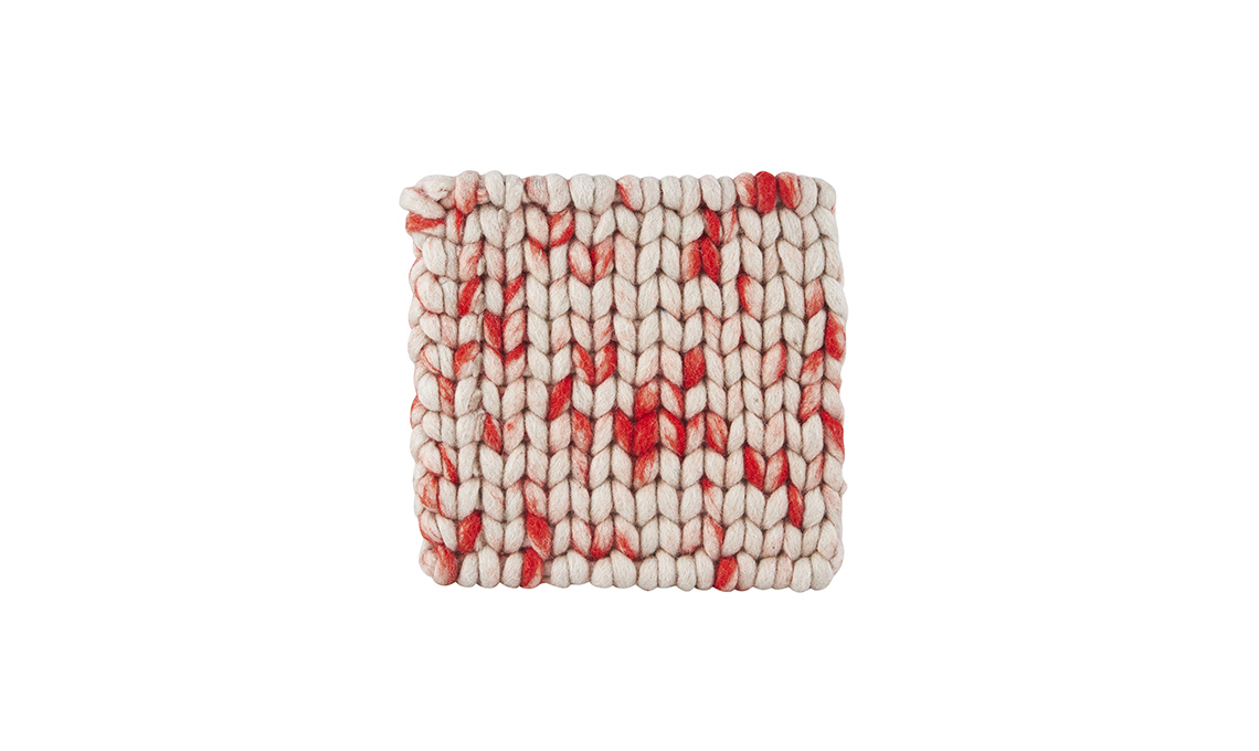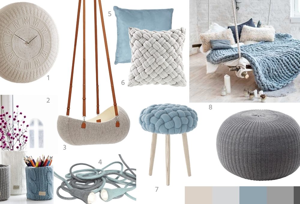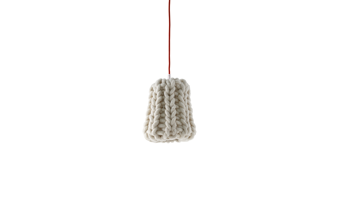 sospensione (c’è anche l'applique) con paralume in lana tricot [Casamania, ø cm 17 da €270].