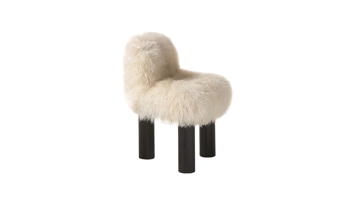 Versione tutta-pelo della storica seduta Botolo [Arflex, cm 53x53x75h prezzo su richiesta].