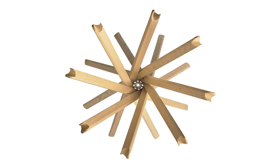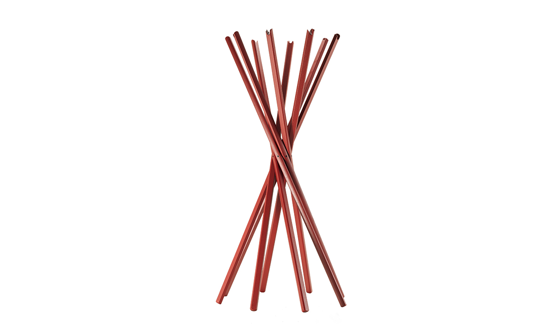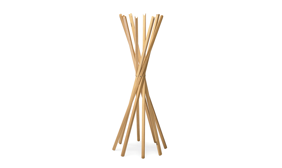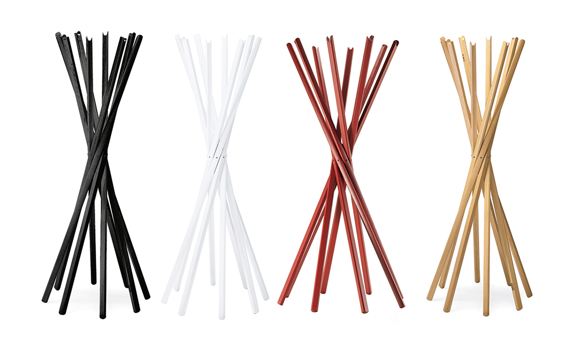 L'appendiabiti Sciangai reinterpreta con spirito ludico la vecchia forma dell’appendiabiti in legno.